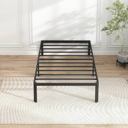 Steel twin bed frame, like new. Assemble in 10 minutes. $ 60 price firm, cash and carry.