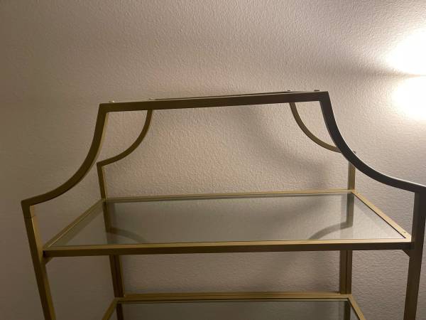 Walmart Better Homes & Gardens 71" Nola 5 Shelf Etagere Bookcase, Gold Finish in great condition. Retails for $128 on Walmart app or Walmart online.