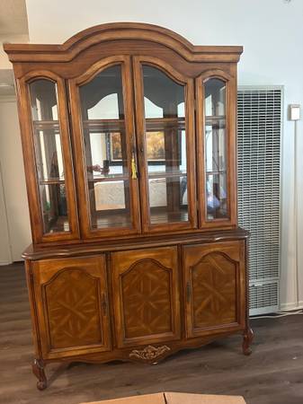 A nice China Cabinet. Upper part with Glass doors and sides, mirrored back.