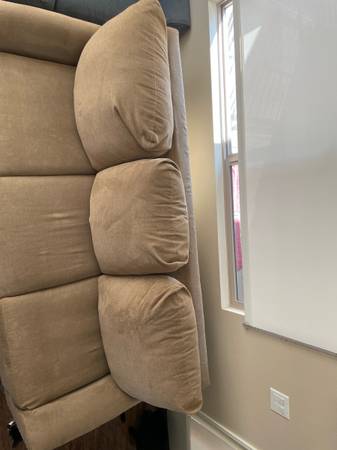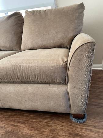 This (non-reclining) La-Z-Boy Amy sofa was purchased in 2018 for $750. Has some scratches from cat (see photos) but otherwise in good condition. Dimensions are approximately 81w x 38h x 39d.