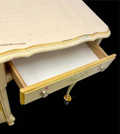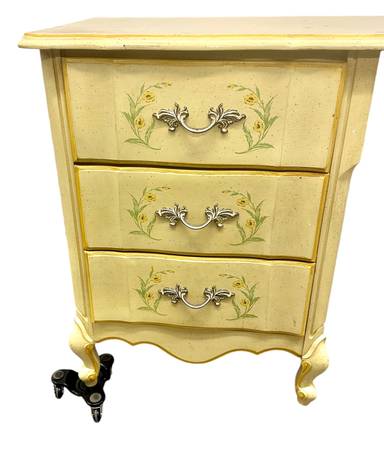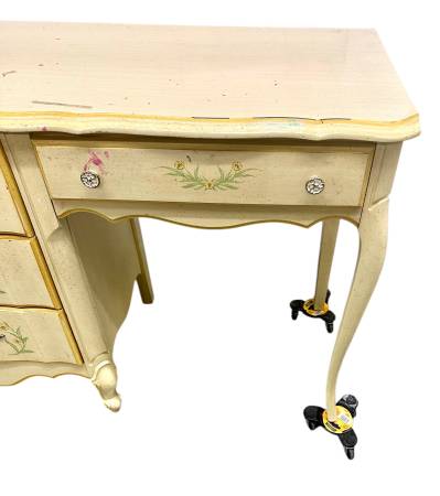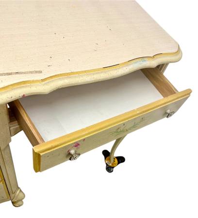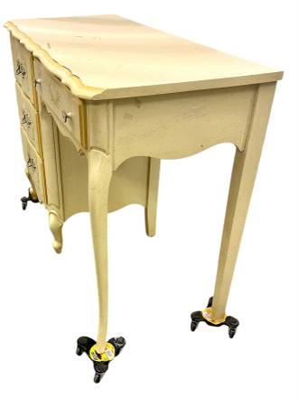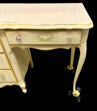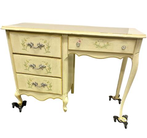 French Provincial dresser features solid wood construction with carved floral details and elegant hardware