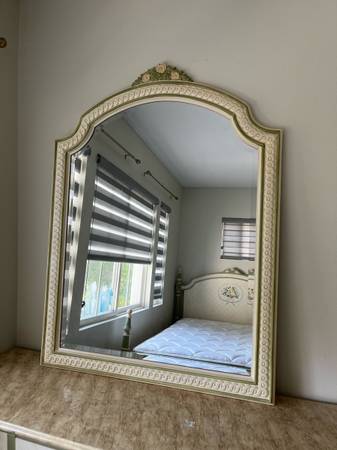 Set includes: bed, dresser, mirror, and nightstand, mattress