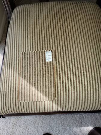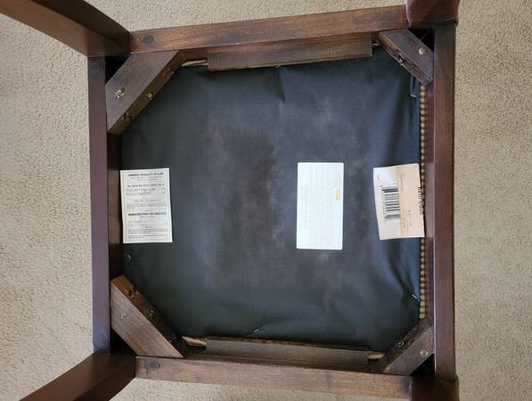 The pictures included in this listing were taken using a Samsung Galaxy S21+ smartphone camera using a combination of natural and artificial light (a flash was not used). The chairs used in the photos were randomly chosen. As noted above, all of the chairs (including the upholstered sections of each chair) are in very good condition. The last picture in the sequence shows the seating area of one of the side chairs, with an upholstery fabric sample laid on top of it. The subject sample was the one originally used to select the upholstery fabric for all of the chairs. This sample has been stored in a folder in a file cabinet since 2004, and has not been exposed to sunlight. Please notice that there has been very little if any fading of the fabric on the upholstered chair, and this is true of all of the chairs. I have 250 more high resolution photos of the dining table and chairs that I can make available for download from the internet upon request.