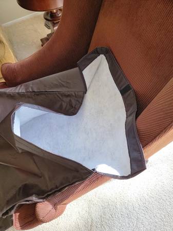 6. Three McKay Dining Table Leaf Storage Bags made from high-grade virgin vinyl exteriors and fully-lined soft white fleece interiors. These bags each have a Velcro flap closure. There are three bags so that each table leaf has its own bag, with a separate bag to hold and protect the dining table pads when they're not being used. The bags are all in very good condition.