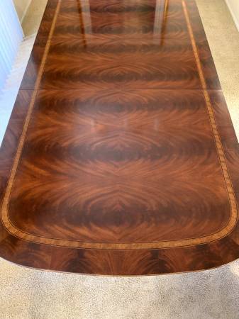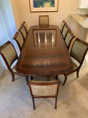 For sale by original owner: Henredon Historic Natchez Collection dining table with two matching leaves and ten chairs (two arm chairs and eight side chairs), all of which were delivered direct to me from the Henredon manufacturing facility in High Point, North Carolina. They were ordered and paid for at the former Henredon/Ralph Lauren Home Furnishings and Interior Design Store in Irvine, California on January 2, 2004. Their original price was $19,489.00 (excluding sales tax and delivery charges). They were never displayed as floor samples.