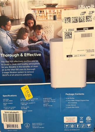 Brand new, never used! LEVOIT True HEPA Air Purifier Vial 100 Air Purifier. Ideal room size 782 ft. Great for allergies, food odors and just clean, purified air in your home. Pick up and cash only,...