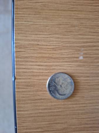 The table top has 3 small defects, all pictured against a Quarter for size reference.