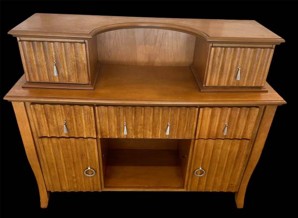 Vintage transitional Hollywood Regency/art deco/Chippendale sideboard/ back bar / buffet.