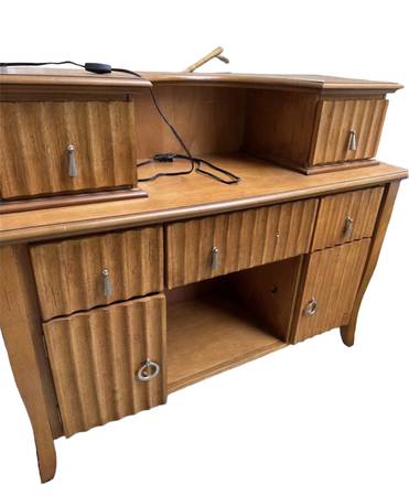 - 3 draws at midlevel. Larger middle draw flanked by two smaller draws