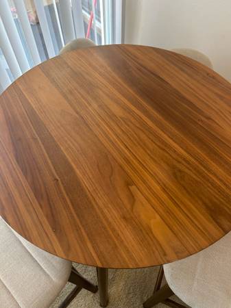 🥘 Mid Century Round Dining Table & Chairs – Walnut Finish – Moving...