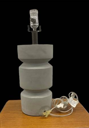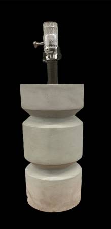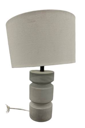 Forged from concrete, this sculpturally stunning lamp adds an architecturally interesting element to any room. The concrete has then been routed to evoke the shape of a piece of turned wood. Its French Drum shade allows for it to be a classic look in any room. Its neutral color shade makes a soft touch for any space.