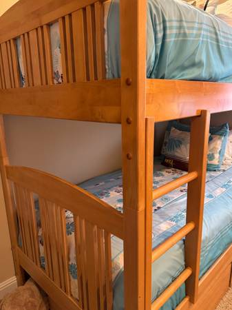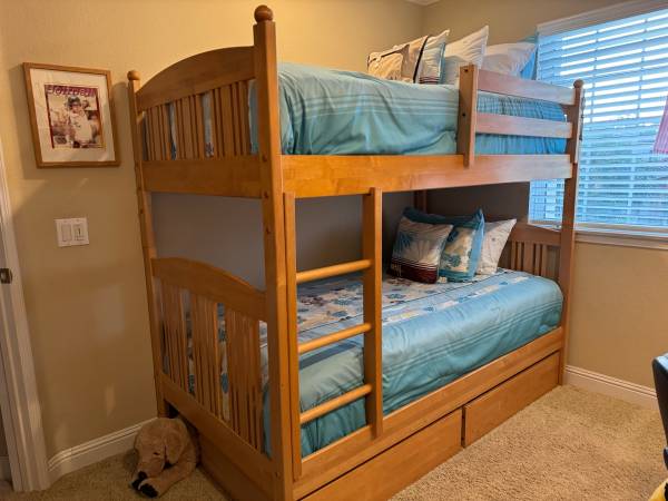 Three-quarter inch plywood overhead on the underside of the top bunk