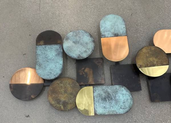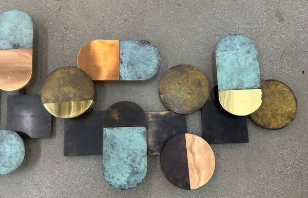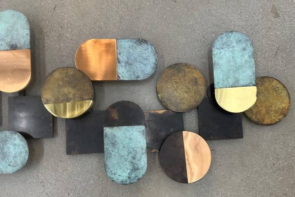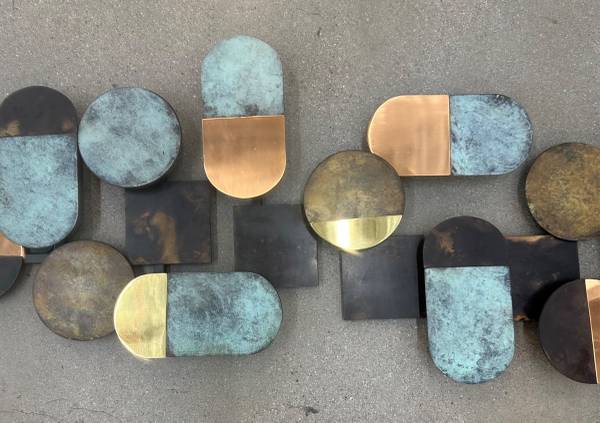This Patina Wall Art mixes finishes and shapes to create an eye-catching piece that adds dimension and shine to spaces in need of some drama. W 42 x H 16 x D 2 inch Metal. Hangs vertically or...