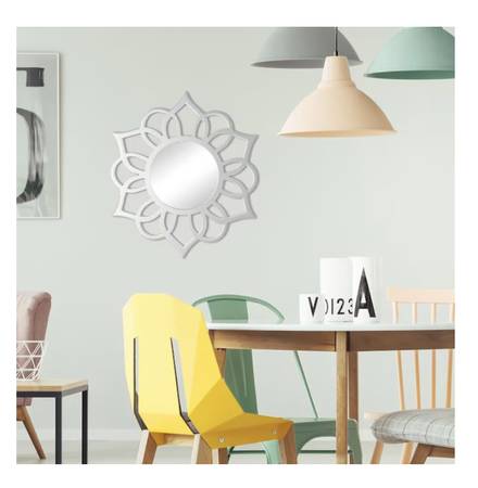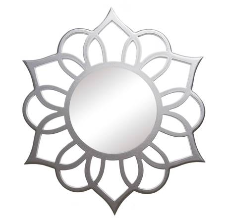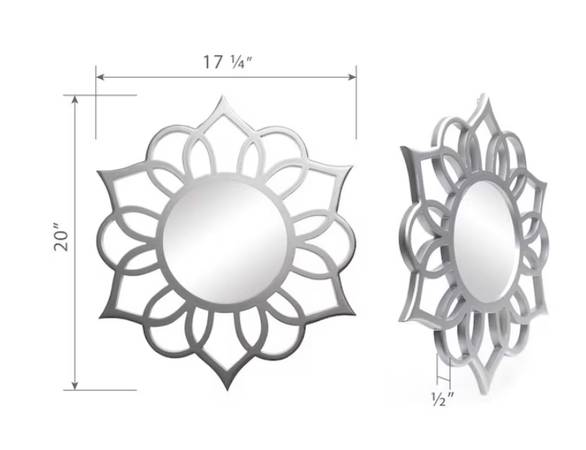 Flower-like in shape, this decorative 20 inch mirror is sure to make a statement in your entryway, kitchen, or bedroom.