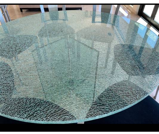 Crackled glass dining table 60” diameter 3/4” thick ( worth more than $5K) selling to best offer