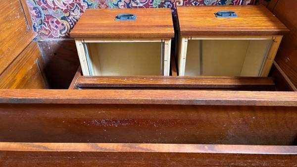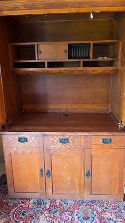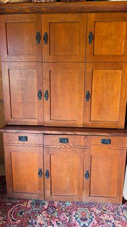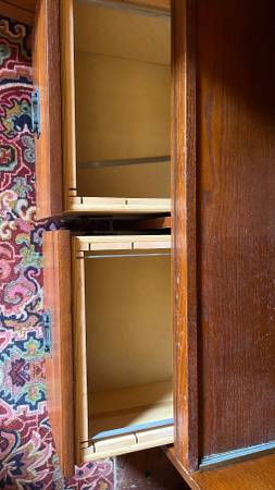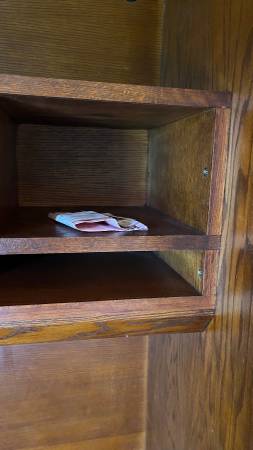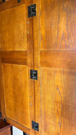 6’ x 4’2” W x 2’1” Top cabinet H 3’6” bottom Cabinet 2’6” Light on inside of cabinet
