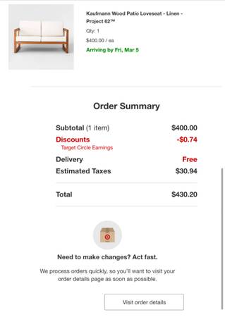 Brown wood and white linen cushions. Great condition, gently used on an apartment patio. 56“ x 30“ x 27“ $100 OR BEST OFFER :)