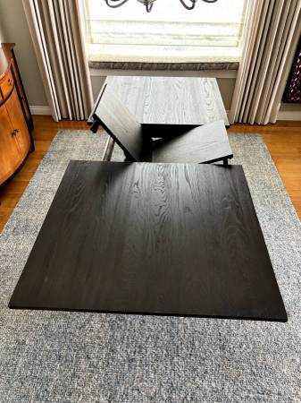 Astor table and Oslyn chairs all in excellent condition and has had very little use. This set new cost over $6K and still looks like it just came out of a showroom. The Astor table can fold in the middle and does not have a scratch on it. Two of the Oslyn chairs are high back and the other four are standard. The high back chairs new cost $700 each and the standard chairs were $549 each. Please contact for measurements of the chairs and table if interested. This dining set will compliment any home. Cash or credit card only.