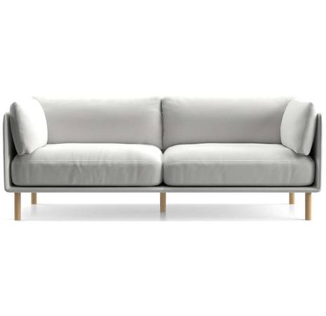 Modern, sophisticated and undeniably inviting. The sofa tucks plump cushions onto a slim frame supported by sustainably sourced solid wood legs with a natural finish. The low deck allows plenty of room for an indulgent seat cushion that encourages you to linger. Tailored with top stitching and French seams on the cushions and a crisp micro-flange outlining the frame, the soft twill fabric suits active family life and cleans up beautifully. Our Wells sofa is a Crate & Barrel exclusive. By choosing FSC ®-certified furniture, you are supporting responsible management of the world's forests.