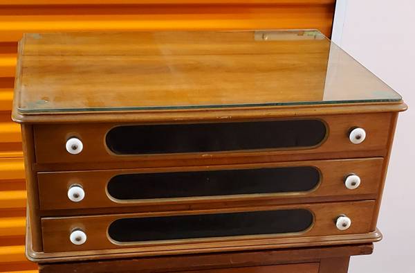 Antique Three Drawer Spool Cabinet, Wood Tabletop Thread Holder -...