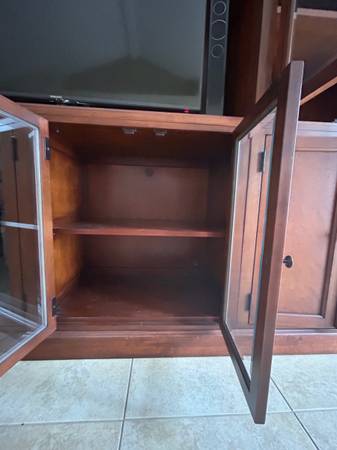 Beautiful Bassett Furniture cherry wood entertainment center. Modular unit, enclosed and glass cabinets. Fits up to 60” TV. See photos! (Unit Only)