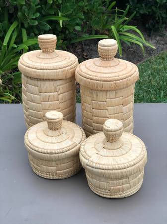 Beautiful collection of decorative accent pieces for your home. A combination of natural materials like ceramics, metals, faux floral greenery and woven baskets. Versatile pieces that can be used to accent your wall shelves, kitchen island, dining table or bathroom counters. Pick up in Foothill Ranch CA 92610.