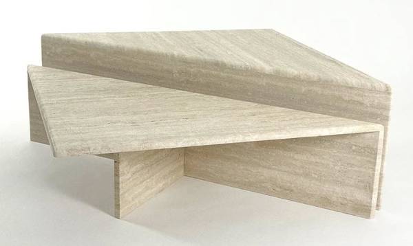 Large Italian Two-Part Travertine Modular Coffee Table, circa 1970s. One small chip in one upright edge of each piece. Otherwise in excellent condition. One piece is 54 x 39 x 39 x 16 high. One...