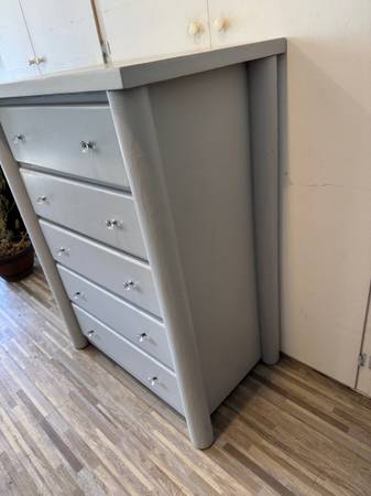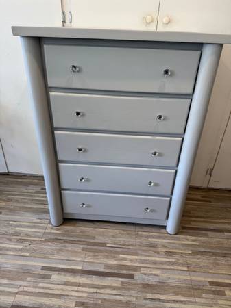 22’ L x 36 W x 47 H Pale/Light Gray Drawers all work Great condition New paint Solid wood
