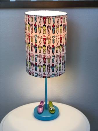 Colorful "shoe themed" lamp from Ashley Furniture. Great accent light for your nightstand, desk or bedroom. Complete and working! Approximately 23" tall.