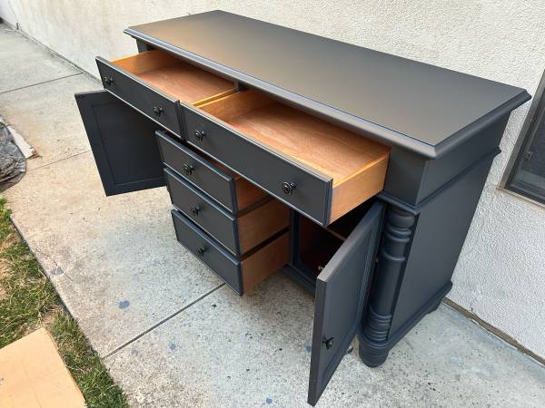 Instead of spending 1300 at Costco for a small 5 drawer non wood dresser get a nice high quality high capacity cabinet with multi purpose use.Can be buffet dresser tv cabinet or more.Measures 60.5 long by 20.5 deep and 39 tall this height is unique to add high capacity with less floor space consumed.features double dovetail drawers and solid brass knobs secure cabinet doors storage .Like new condition.All wrapped can deliver local if needed.If the ad is up we have it in Mission Viejo for the first 625.We will reply in order to those who leave call back numbers
