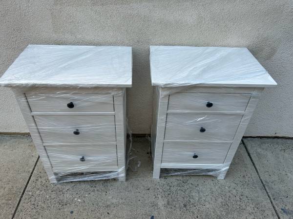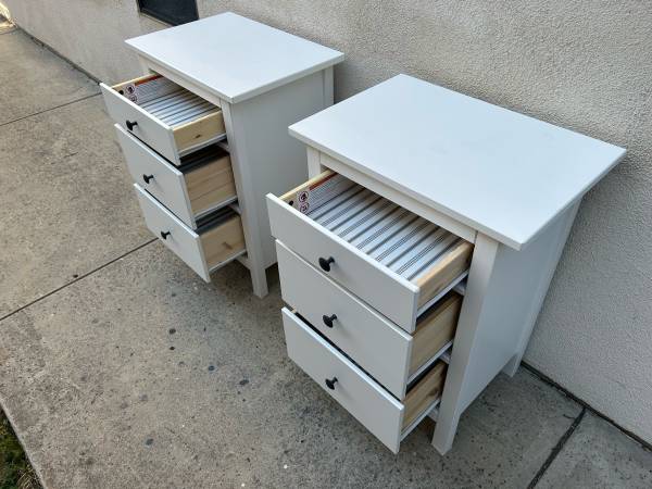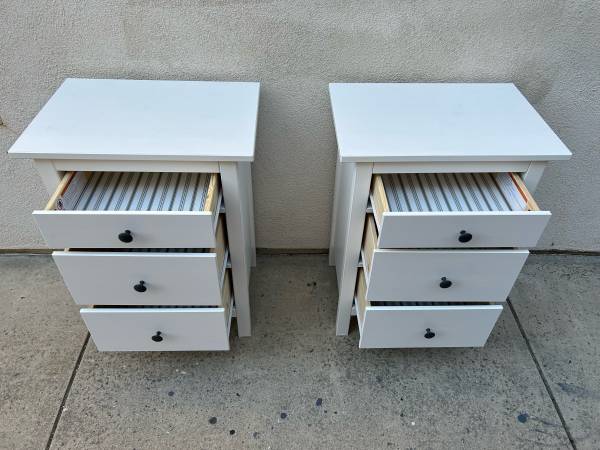 These are quality made thick wood ex large like new HEMNES nightstands .Measures 23 wide by 16 deep and whopping 32 tall.Easy roller 3 drawers per unit and also have nylon leg caps on the bottom.These are heavy sold units in this series.All nicely wrapped and can deliver local if needed.If the ad is up we have them for the first 375 these are no longer produced and they are a great find .We will reply in order to those who leave call back numbers