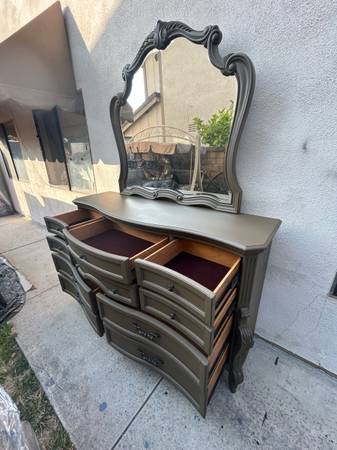 Instead of spending 1300 at Costco for a small laminate non wood 5 drawer dresser get an amazing beautiful high quality high capacity 10 drawer wooden dresser with mirror .Dual ball bearing soft close drawers are awesome .Measures 70 long by 20 deep and a whopping 42.5 tall.Mirror is 48 wide by 45.5 tall.All nicely padded and wrapped and can deliver and set up if needed save a huge bundle on pro delivery and the dresser .If the is up we have it in Mission Viejo for 675 firm.