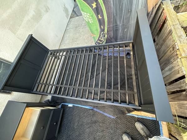 Instead of spending 1300 at Costco for a single small 5 drawer laminate non wood dresser get a complete quality wooden set with thick dovetail drawers and dual ball bearing drawer tracks .You get dresser nightstand headboard footboard bed rails and slats.Dresser is 34.25 wide by 19 deep and 47 tall.Nightstand is 22.25 wide by 19 deep and 25.5 tall.If the ad is up it’s excellent condition all nicely wrapped in Mission Viejo for the first 750.It’s a 4 pc set .Save a bundle we will reply in order to those who leave call back numbers