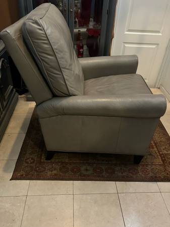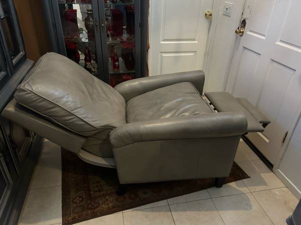 This beautiful quality relcliner manufactured in North Carolina is a 1500 dollar quality real leather not faux fake leather and comfortable well built unit.You get what you pay for.In this case we have to sacrifice it no room and it’s like new condition for only a small percentage of its cost .We can deliver local if needed.If the ad is up we have it in Mission Viejo ,who will be the only one to save over a thousand to have this chair.We will reply in order to those who leave call back numbers.This material will last many years