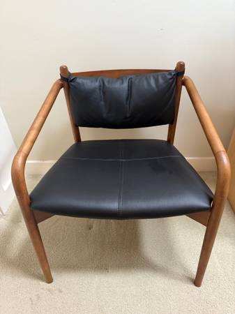 Selling two Mid Century Black Leather Solid Wood Chairs, $400 each