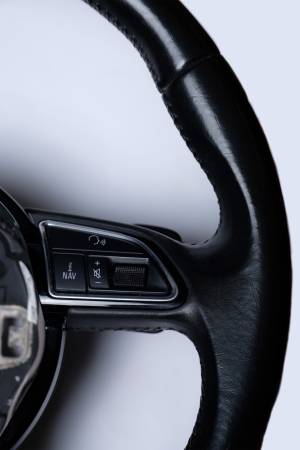 Original Audi Steering wheel of a 2015 Audi Q5. Made with premium smooth leather, this steering wheel feels amazing. Paddle shifting, push to talk, navigation, mode buttons and more. Please make sure this will fit your model before purchasing, you just need to have a shop install with the center horn/airbag part and you are good to go! Should fit 2014 2015 2016 2017 Q5 and SQ5