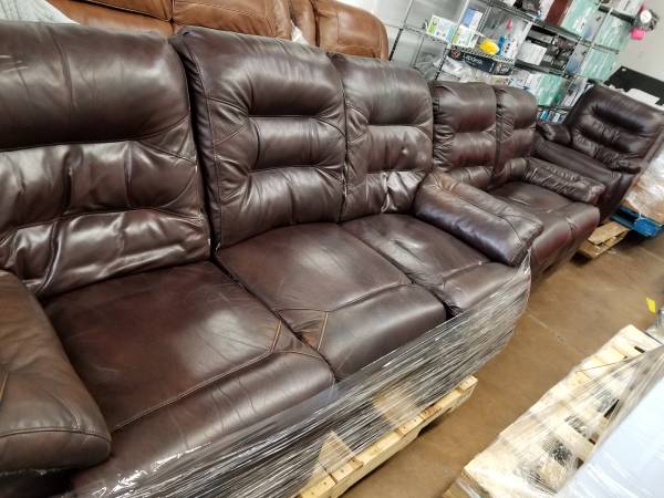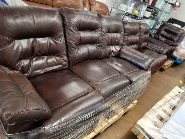 PRICE IS FIRM. BROWN LEATHER RECLINER COUCH. 89 INCHES WIDE. COUCH ONLY. I HAVE A MATCHING RECLINER LOVE SEAT ($895) AND RECLINER CHAIR ($795) ALSO. BOTH ARE IN EXCELLENT CONDITION. THE COUCH IS NOT PERFECT. THERE ARE SOME MINOR FLAWS ON IT. I USED TO BUY TRUCKLOADS OF OVERSTOCK, DISCONTINUED AND RETURNED ITEMS FROM COSTCO AND NOW I'M CLEARING OUT THE WAREHOUSE.