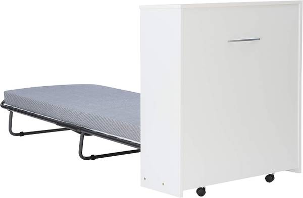 Linon Florence Rollaway Bed with Memory Foam Mattress in Storage Cabinet (Single, White)