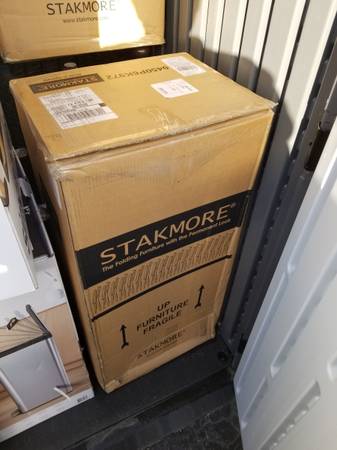 STAKMORE FOLDING CHAIRS -NEW IN BOX. $199 A PAIR. I HAVE ONE PAIR. I USED TO BUY TRUCKLOADS OF COSTCO OVERSTOCK, DISCONTINUED AND RETURNED ITEMS. NOW I'M CLEARING OUT THE WAREHOUSE.