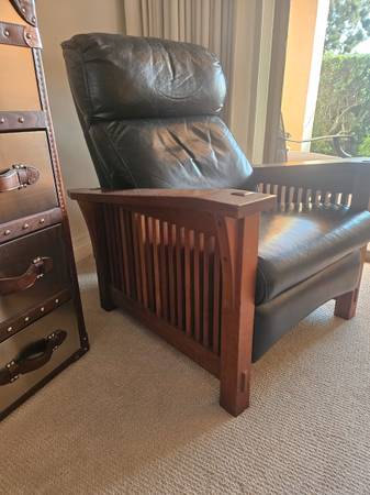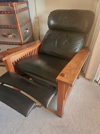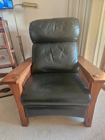 Stickley Mission Leather Cherry Spindle Morris Recliner. Excellent Condition! Dark Green Leather, Cherry wood. This is not a copy, it's the real thing. Must see. This is half the regular retail...