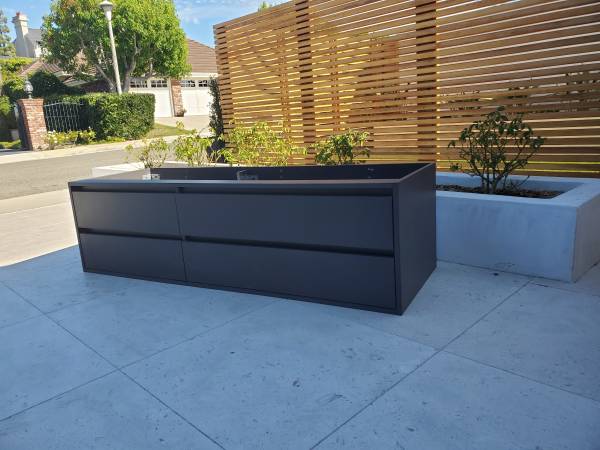 It is missing the Stone top and faucet. See it with the stone top here:
