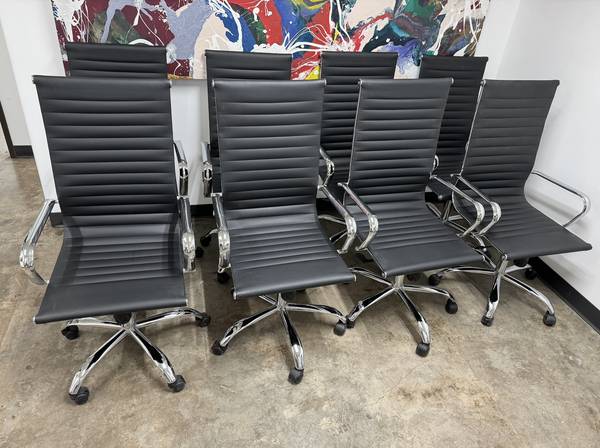 Ad is for 8 GENUINE LEATHER office chairs for $1080 or 10 for $1300 + FREE DELIVERY. *If you need more than 10 chairs please email me for pricing and/or to see how many chairs I have left.*