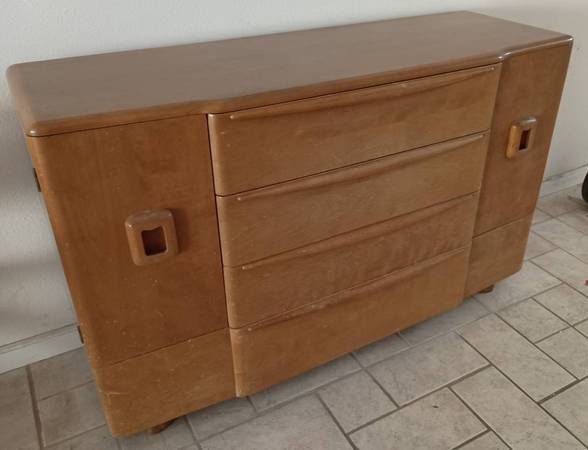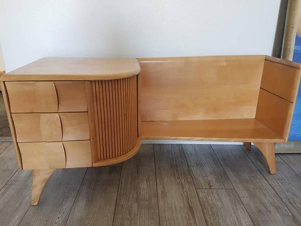 For sale are my various selection of solid yellow birch Heywood Wakefield furniture made in Gardner Massachusetts since 1826, with my selection mostly focusing on late Deco through mid century modernist designs.