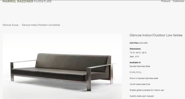 Here is a stunning architectural design long sofa by LEO MARMOL and RON RADZINER. This is the GLENCO GROUP SERIES indoor/outdoor piece.