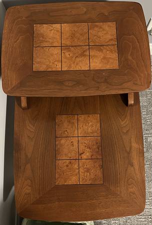 Lane Altavista Mid-Century Modern 2 Tier End Table with Inlaid Walnut Burl squares