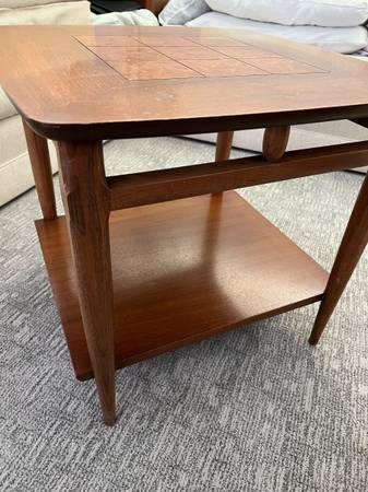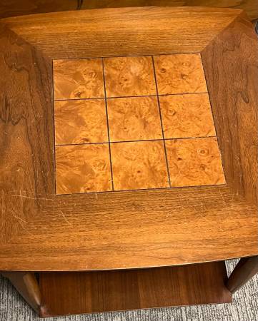 Lane Altavista Mid-Century Modern 2 Tier End Table with Inlaid Walnut Burl squares