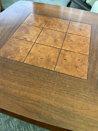 Table was purchased new in late 1950s with one owner, non-smoking home. Original finish. Condition is good with wear, scuffs, and scrapes consistent with age and use as shown in photos.