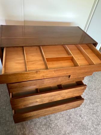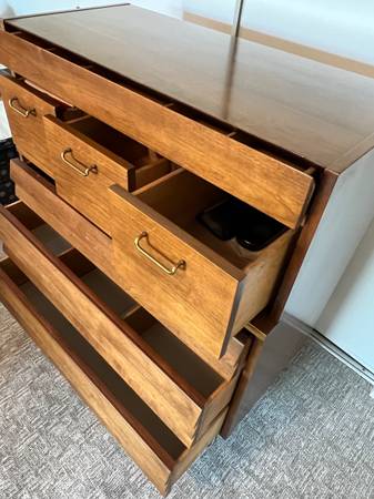 Tall Chest of Drawers / Dresser was purchased new in early 1960s with one owner, non-smoking home. Original finish. Condition is very good with wear consistent with age and use - includes some minor scuffing to areas of laminate.