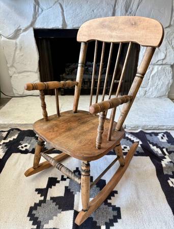 This antique/vintage children's rocking chair is a beautiful piece that adds character to any room. It would be perfect for an child's bedroom, playroom, or nursery. Don't miss out on the opportunity to own this beautiful antique/vintage rocking chair for your child.
