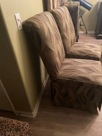This is for a set of 4 custom dining room chairs in excellent condition. The color is sage-green/brown. These can also be used for seating in living or family rooms. This is a great deal for 4 high-quality chairs. Call or text kevin show contact info